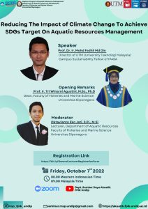 The Aquatic Resources Management Magister Study Program, Department of Aquatic Resources, FPIK, Undip held an Online Seminar on MSP with the theme of Reducing the