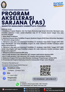 PENERIMAAN MAHASISWA BARU (PMB) PROGRAM AKSELERASI SARJANA (PAS) PASCA MAGISTER UNDIP Gelombang 1 Semester Gasal TA 2023/2024 Universitas Diponegoro memberikan kesempatan bagi lulusan Universitas Diponegoro