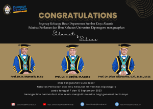 Inauguration of FPIK UNDIP Professor The entire extended family of the Department of Aquatic Resources, Faculty of Fisheries and Marine Sciences, Diponegoro University would like to say: “Congratulations and success”