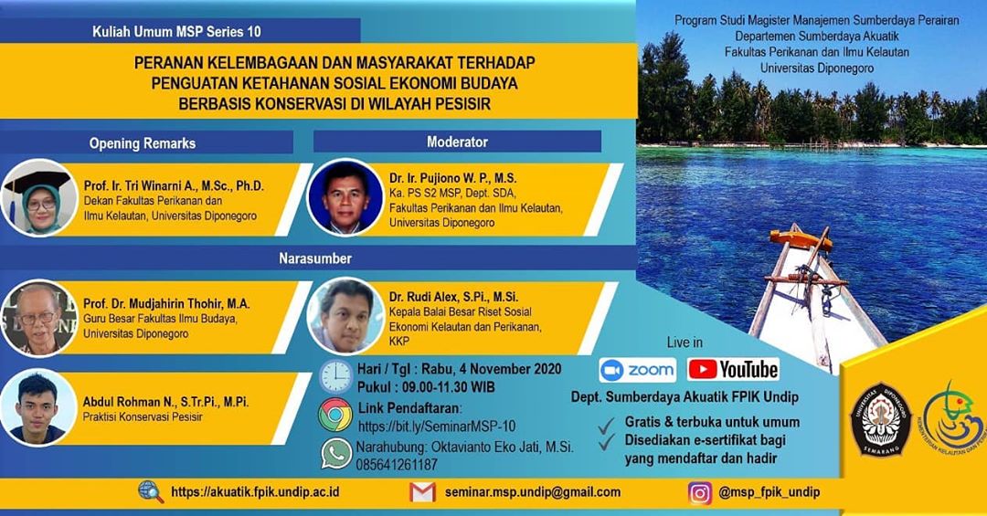 The Study Program of Master in Aquatic Resources Management, Department of Aquatic Resources, Faculty of Fisheries and Marine Sciences, Diponegoro University held an MSP Series