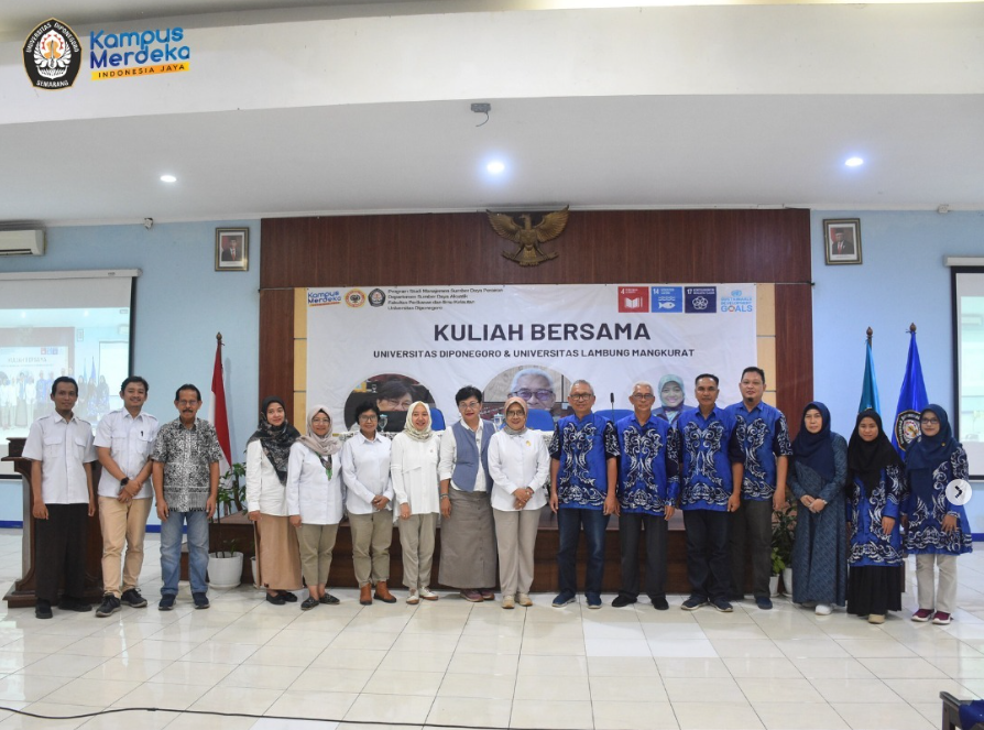 Collaborative Joint Public Lecture between Diponegoro University and Lambung Mangkurat University inviting resource persons from Lambung Mangkurat University, Dr. Opportunities and Challenges of Utilizing Excavated Coal Mine Holes as Fish Cultivation Locations”. The second resource person is Prof. Norma Afiati, M.Sc., Ph.D is a Professor at the Faculty of Fisheries and Marine Sciences with the topic “Determinants of Key Species in Amdal Studies”.